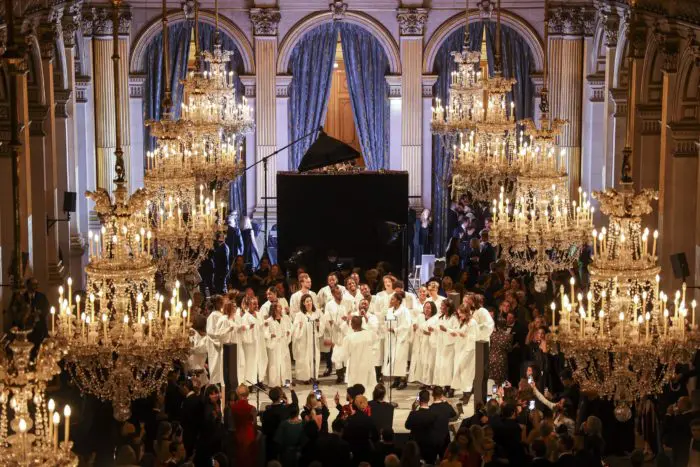 Les BOF500 ( les 500 invités de Business of fashion) ne s’attendaient pas à avoir un tel accueil. Notre chorale de gospel, vêtue de toges blanches pour l’occasion était positionnée de part et d’autre de l’escalier principal de l’hôtel de ville.